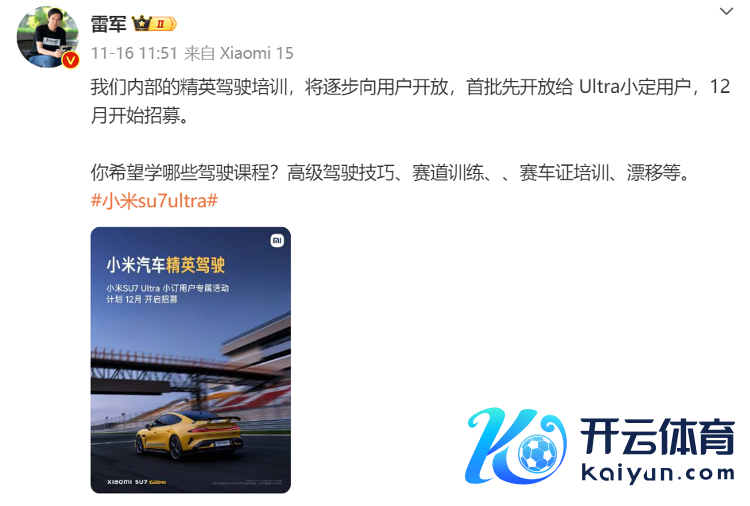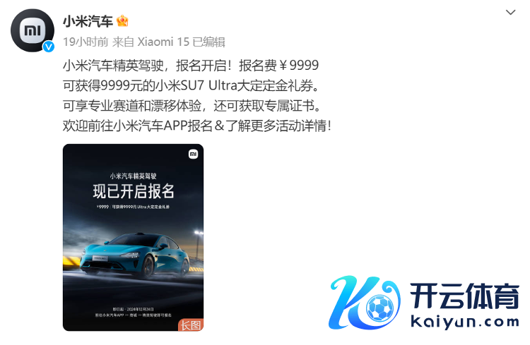 小米汽车官宣精英驾驶报名凯时体育游戏app平台