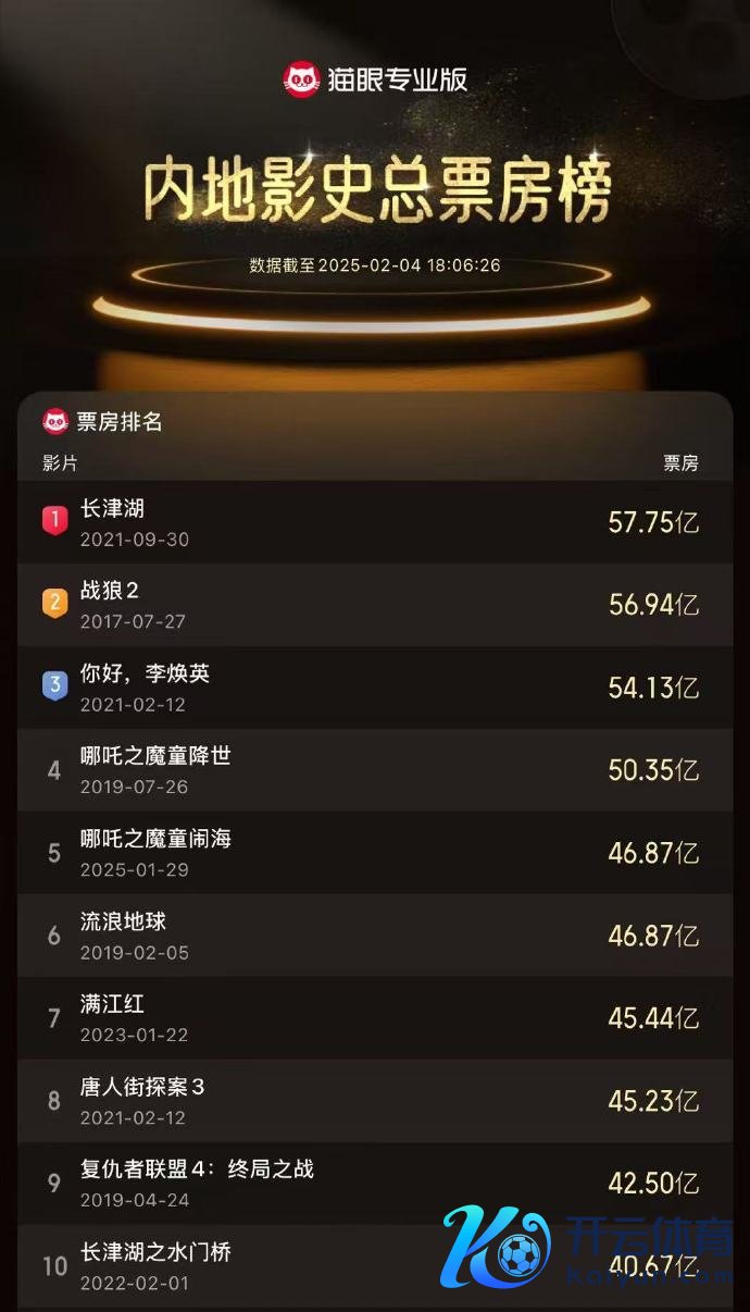 《哪吒之魔童闹海》插足中国影史票房榜前五《哪吒之魔童闹海》插足中国影史票房榜前五