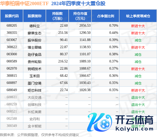 华泰柏瑞中证2000ETF为指数型-股票基金,把柄最新一期基金季报败露,该基金钞票成立:股票占净值比98.26%,债券占净值比0.02%,现款占净值比2.9%。基金十大重仓股如下:
