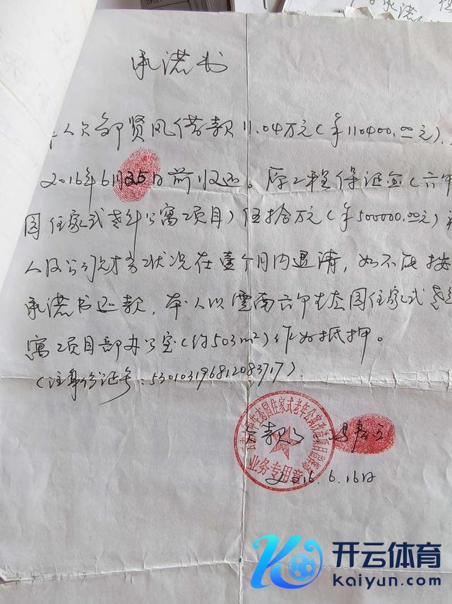 邹先生还向记者出示了一沓他整理好的贵府,这内部有六甲生态园住宅式养老公寓或其法东说念主季福宝签字的借券及股权典质秘书,银行活水等。记者在一份2016年的《开心书》中看到:定于昔时6月25日前,返璧工程保证金50万元给邹先生,如无法还款,将以老年公寓面目部办公室当作典质。题名处有“云南六甲生态园住家式老年公寓考订面目率领部业务专用章”。
